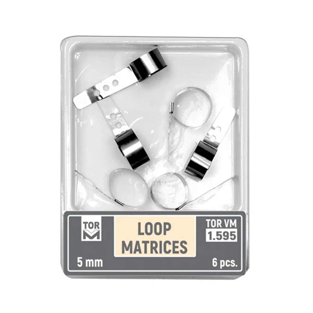 The kit contains 6 loop matrices, typically divided into two primary sizes to accommodate different tooth diameters: